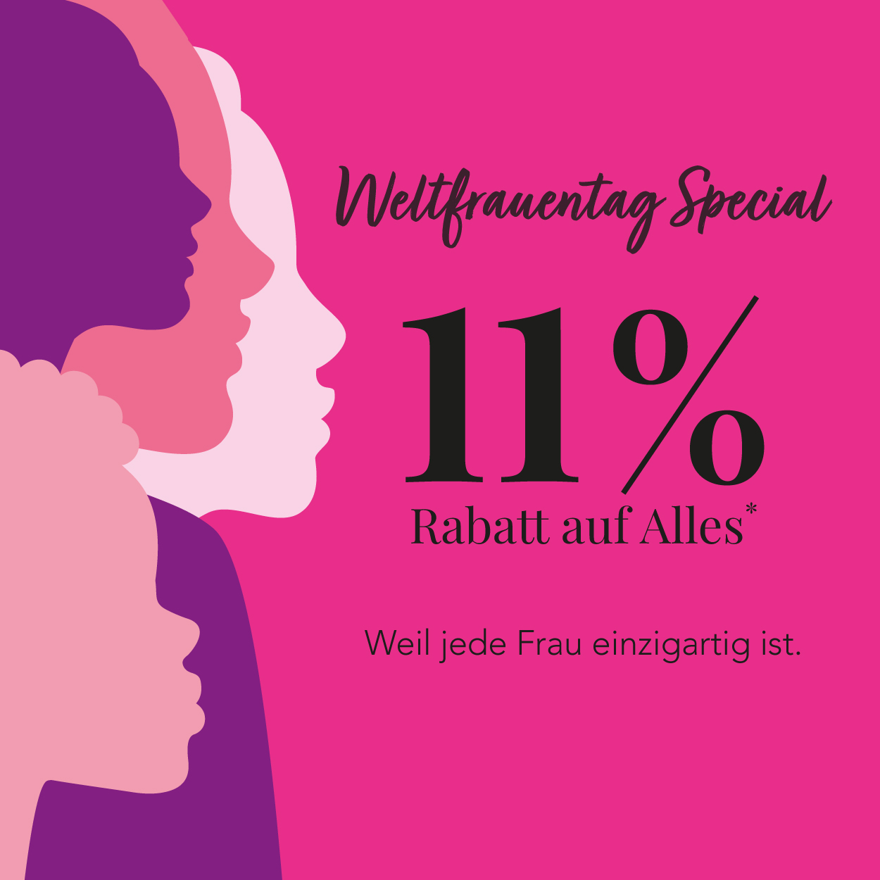 Denn Sie leisten jeden Tag Großartiges – im Beruf, in der Familie, im Freundeskreis und für sich selbst. Dies ist Ihr Tag – und den feiern wir mit einem besonderen Dankeschön. Ab heute bis zum 08.03. erhalten Sie